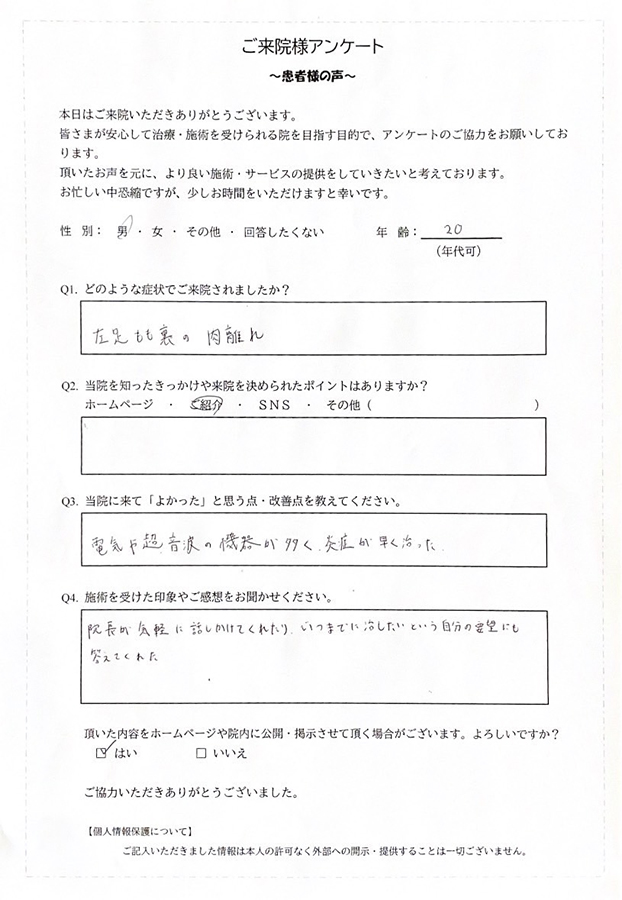 症状により、固定やテーピング、ストレッチや筋膜リリースなども施して、痛みの改善、根本的な治癒を目指します。
